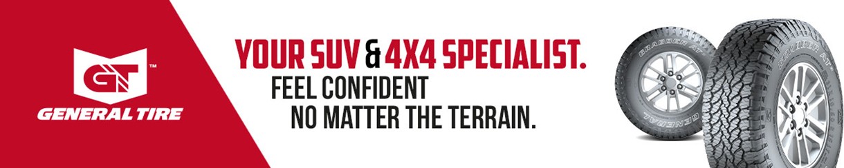 General Tire, a brand of Continental was founded in 1915, celebrating over 100 years in the tyre industry. The General Tire brand has proven its ability to compete in the constantly changing tyre industry with manufacturing and technological advancements, ensuring their products stay at the forefront of tyre performance. Their tyres are produced for many different vehicles, but their speciality is 4x4 and SUV tyres. With a wide range of tyre patterns and sizes, they continue the on-going tradition of being the customers’ choice when it comes to quality, value and performance. This commitment is demonstrated by General Tire's strapline ‘Anywhere is Possible’ – a mission statement used to convey all aspects of performance, handling and durability across the full spectrum of driving situations.